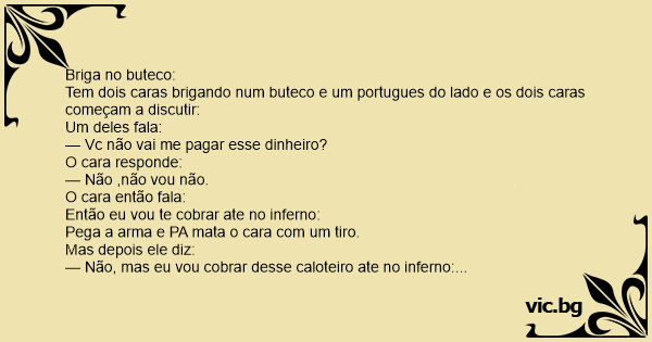 Tem dois caras brigando num buteco e um portugues do lado e os dois caras começam a discutir: