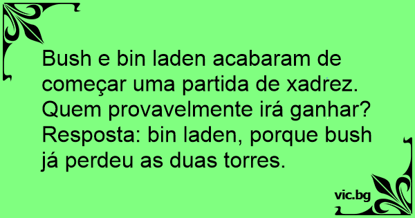 Bush e bin laden acabaram de começar uma partida de xadrez. Quem provavelmente irá ganhar?