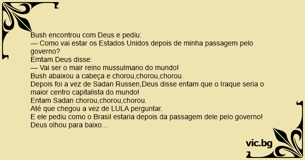E ele pediu como o Brasil estaria depois da passagem dele pelo governo!