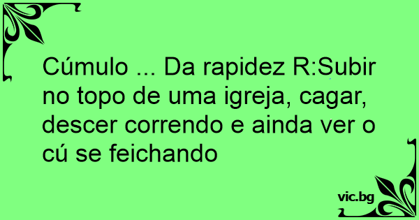 Cúmulo ... Da rapidez R:Subir no topo de uma igreja, саgаr, descer correndo e ainda ver o cú se feichando