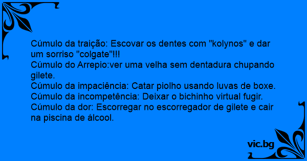 Cúmulo do Arrepio:ver uma velha sem dentadura chupando gilete.