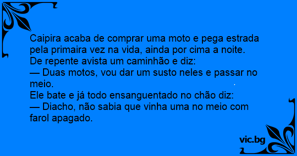 — Diacho, não sabia que vinha uma no meio com farol apagado.