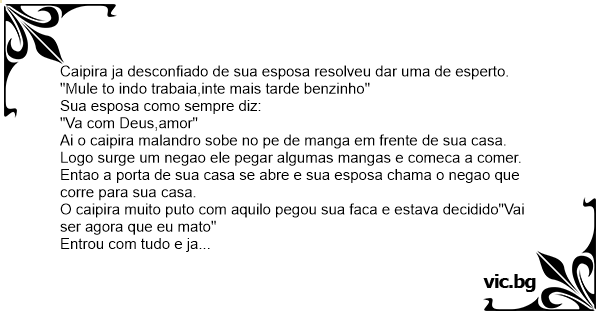 O negao levantou puxou um facao daqueles bem grande e disse intimando o caipira:
