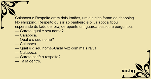 No shopping, Respeito quis ir ao banheiro e o Calaboca ficou esperando do lado de fora, derepente um guarda passou e perguntou: