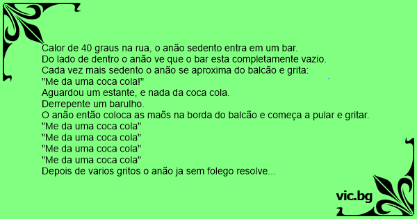 Cada vez mais sedento o anão se aproxima do balcão e grita: