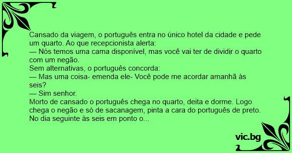 Cansado da viagem, o português entra no único hotel da cidade e pede um quarto. Ao que recepcionista alerta: