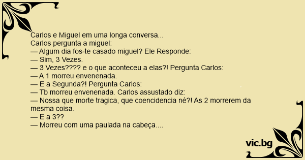 — 3 Vezes???? e o que aconteceu a elas?! Pergunta Carlos: