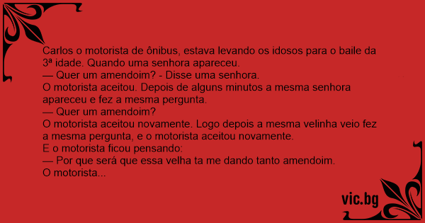 O motorista aceitou novamente. Logo depois a mesma velinha veio fez a mesma pergunta, e o motorista aceitou novamente.