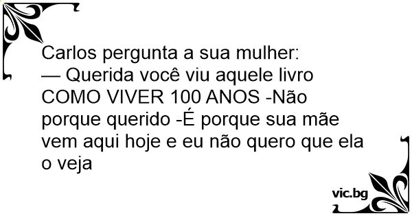 — Querida você viu aquele livro COMO VIVER 100 ANOS -Não porque querido -É porque sua mãe vem aqui hoje e eu não quero que ela o veja