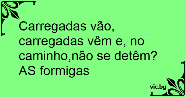Carregadas vão, carregadas vêm e, no caminho,não se detêm?AS formigas