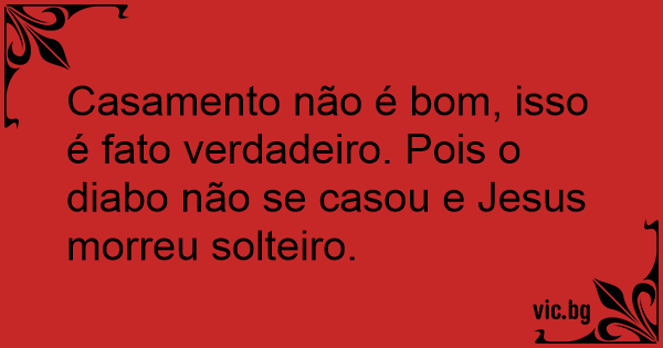 Casamento não é bom, isso é fato verdadeiro. Pois o diabo não se casou e Jesus morreu solteiro.