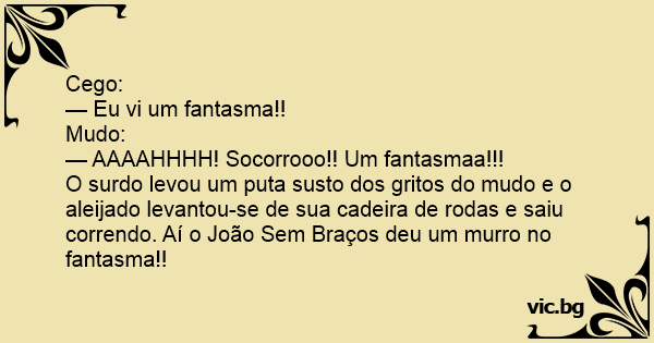 O surdo levou um рuта susto dos gritos do mudo e o aleijado levantou-se de sua cadeira de rodas e saiu correndo. Aí o João Sem Braços deu um murro no fantasma!!
