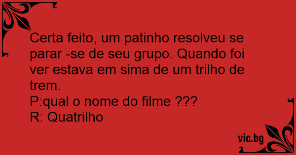 Certa feito, um patinho resolveu se parar -se de seu grupo. Quando foi ver estava em sima de um trilho de trem.