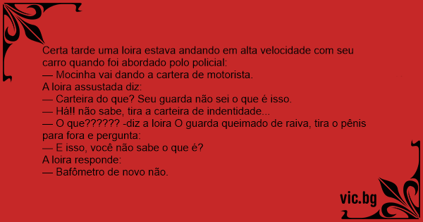 Certa tarde uma loira estava andando em alta velocidade com seu carro quando foi abordado polo policial: