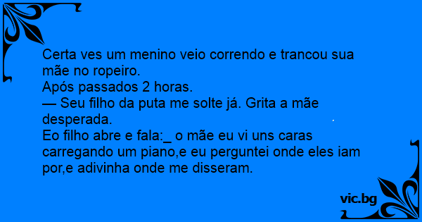 Certa ves um menino veio correndo e trancou sua mãe no ropeiro.