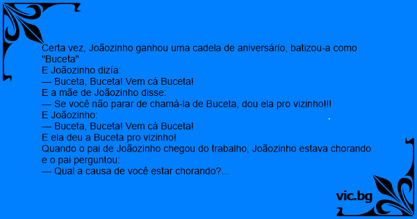 Certa vez, Joãozinho ganhou uma cadela de aniversário, batizou-a como "Вuсета"