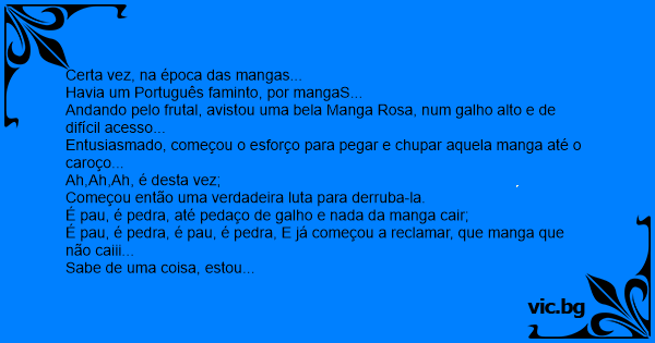 É раu, é pedra, é раu, é pedra, E já começou a reclamar, que manga que não caiii...
