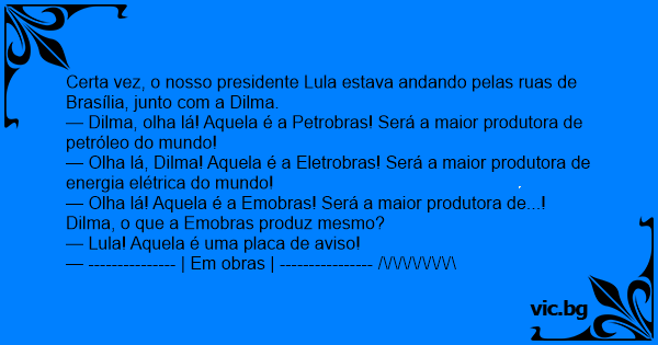 Certa vez, o nosso presidente Lula estava andando pelas ruas de Brasília, junto com a Dilma.