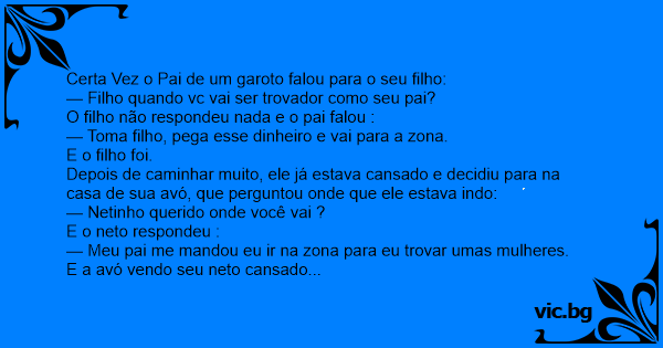 — Meu pai me mandou eu ir na zona para eu trovar umas mulheres.