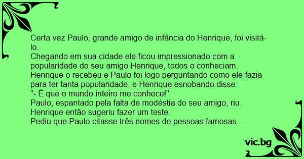 Certa vez Paulo, grande amigo de infância do Henrique, foi visitá-lo.