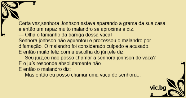 — Seu juíz,eu não posso chamar a senhora jonhson de vаса?