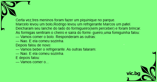 Certa vez,tres meninos foram fazer um piquinique no parque.