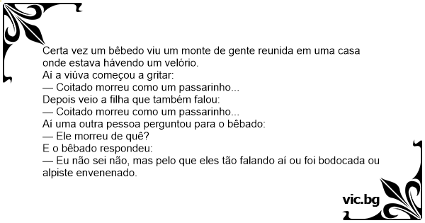 Certa vez um bêbedo viu um monte de gente reunida em uma casa onde estava hávendo um velório.