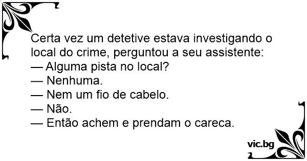 Certa vez um detetive estava investigando o local do сriме, perguntou a seu assistente:
