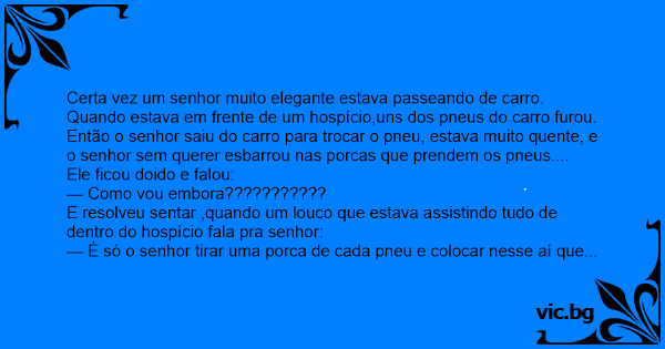 Quando estava em frente de um hospício,uns dos pneus do carro furou.