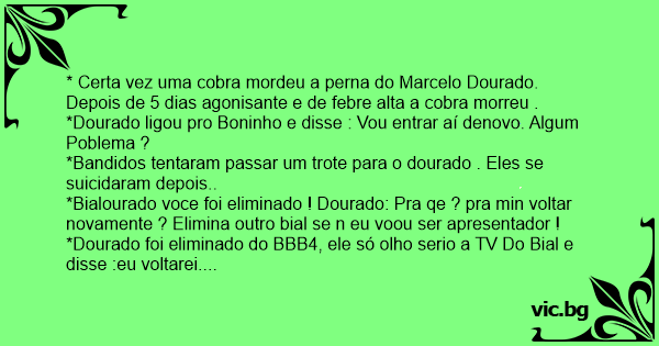 * Certa vez uma cobra mordeu a perna do Marcelo Dourado. Depois de 5 dias agonisante e de febre alta a cobra morreu .