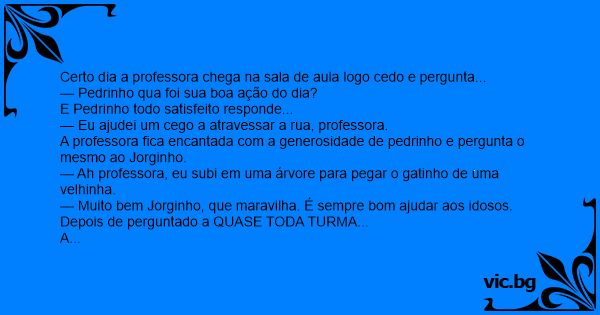 Certo dia a professora chega na sala de aula logo cedo e pergunta...