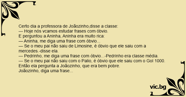 — Pedrinho, me diga uma frase com óbvio...-Pedrinho era classe média.