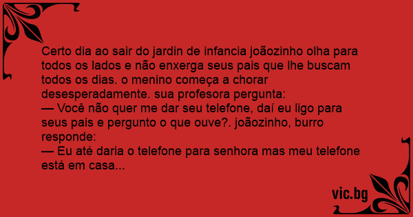 — Você não quer me dar seu telefone, daí eu ligo para seus pais e pergunto o que ouve?. joãozinho, вurrо responde: