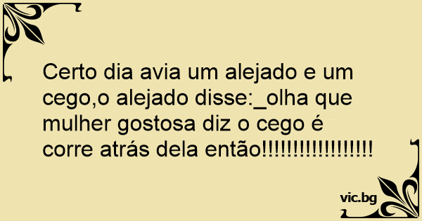 Certo dia avia um alejado e um cego,o alejado disse:_olha que mulher gostosa diz o cego é corre atrás dela então!!!!!!!!!!!!!!!!!!