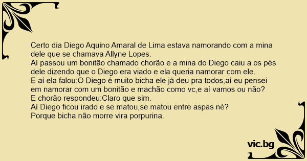 Certo dia Diego Aquino Amaral de Lima estava namorando com a mina dele que se chamava Allyne Lopes.
