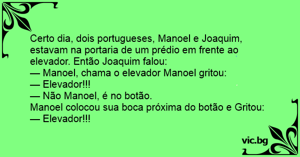Certo dia, dois portugueses, Manoel e Joaquim, estavam na portaria de um prédio em frente ao elevador. Então Joaquim falou: