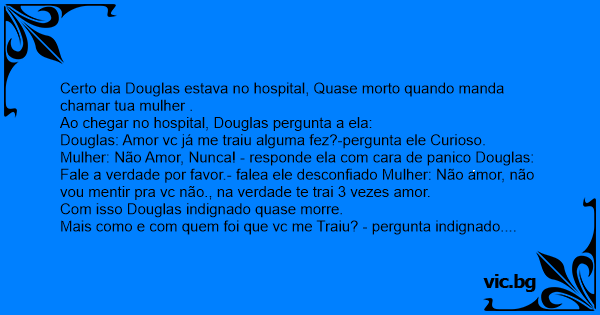 Certo dia Douglas estava no hospital, Quase morto quando manda chamar tua mulher .