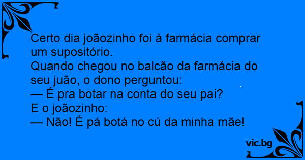 Certo dia joãozinho foi à farmácia comprar um supositório.