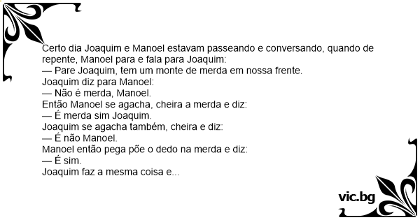 Certo dia Joaquim e Manoel estavam passeando e conversando, quando de repente, Manoel para e fala para Joaquim: