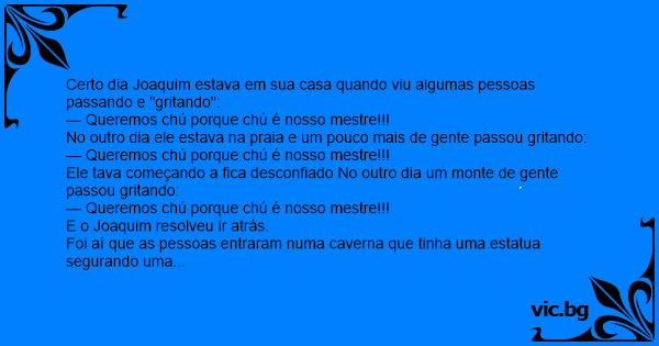 Certo dia Joaquim estava em sua casa quando viu algumas pessoas passando e "gritando":