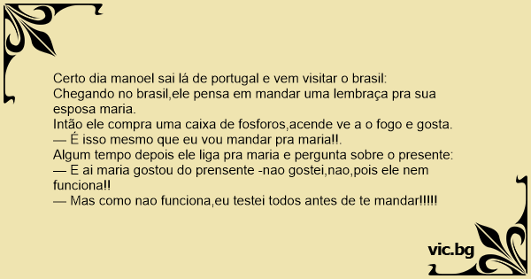 Certo dia manoel sai lá de portugal e vem visitar o brasil: