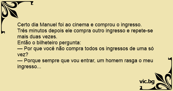 Certo dia Manuel foi ao cinema e comprou o ingresso.