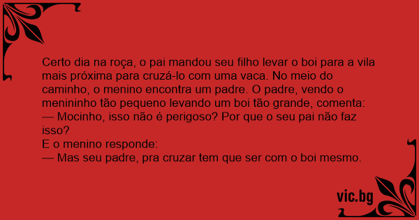 — Mas seu padre, pra cruzar tem que ser com o boi mesmo.