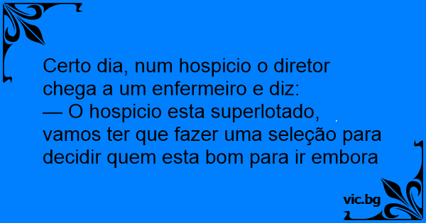 — O hospicio esta superlotado, vamos ter que fazer uma seleção para decidir quem esta bom para ir embora