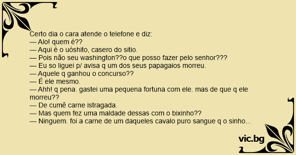 — Eu so liguei p/ avisa q um dos seus papagaios morreu.