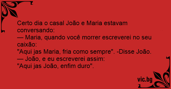 Certo dia o casal João e Maria estavam conversando: