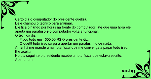 No dia seguinte o presidente recebe a nota fiscal que estava escrito: