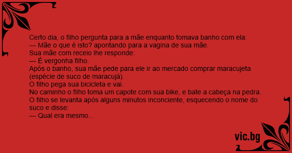 Certo dia, o filho pergunta para a mãe enquanto tomava banho com ela: