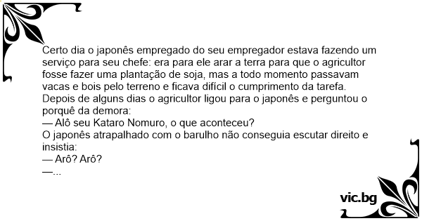 Depois de alguns dias o agricultor ligou para o japonês e perguntou o porquê da demora:
