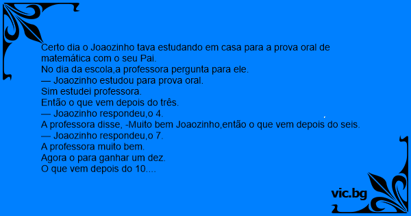 — Joaozinho respondeu. Essa é fácil Professora,o que vem depois do dez é o Valete.